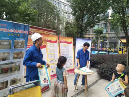 ▲向商户和业主发放文明乘梯宣传手册并组织电梯安全知识宣讲