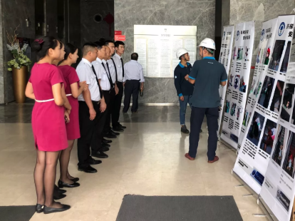 并通过电梯事故重现故障处理演示方式,用实操的模式让在场众人更深入了解安全乘梯知识,牢记电梯事故安全法则和事故应急处理办法,避免使用不当造成电梯故障,杜绝困梯时采用不当脱困措施造成的事故发生。