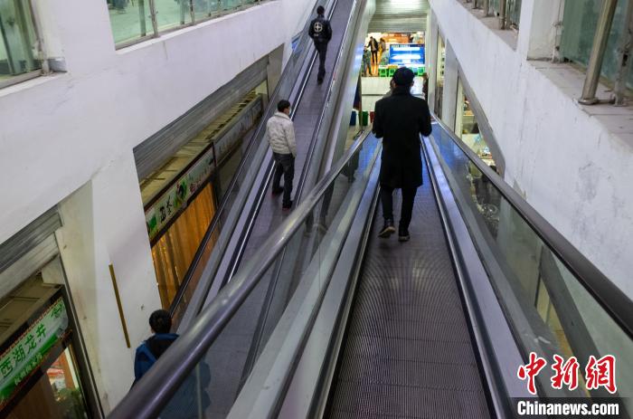 资料图为拉萨市民乘坐柳梧菜市场的扶梯。 江飞波 摄