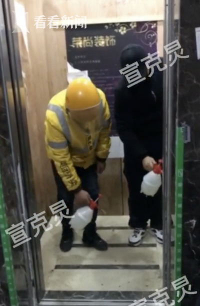 目前,这名外送员经上级领导、物业的教育后,主动承认了自己的错误,并撰写了道歉信向业主们道歉。并重回现场,在电梯厢内喷洒消毒液。