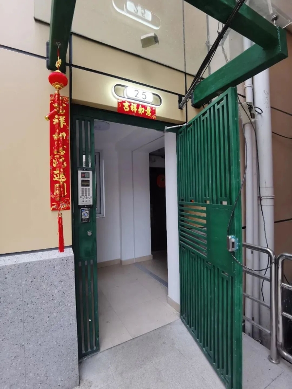 2月3日上午,周二居民区华苑小区喜气洋洋,两部崭新的电梯伫立在小区的24、25号居民楼前,黄色的梯身和房屋的外立面完美契合。春节期间,加梯公司和楼内居民还一起在楼栋、电梯内装点上了窗花和灯笼,一派喜庆祥和。