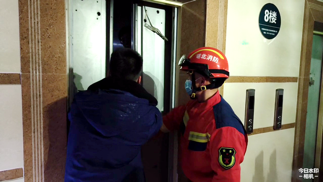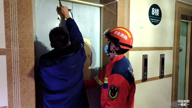 消防救援人员到场后,因为停电不清楚报警人被困几楼,于是从小区车库负一楼逐层敲打电梯轿门,听被困人员的声音来判断其所在楼层位置。随后终于在八层成功救出被困的一名女士和一名孩童。经过询问,报警人称已经被困一个多时候了,本打算等物业到来,后面实在没办法才报警,所幸2名被困人员并未受伤。