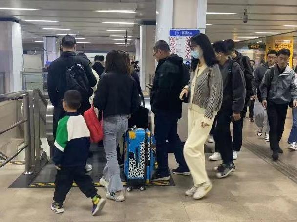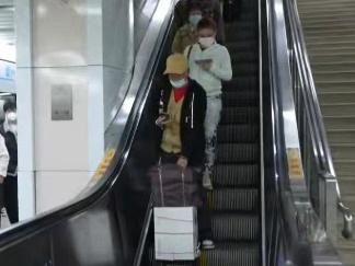 记者在现场看到,在乘客中,携带大件行李选择乘坐扶手电梯或者步行上下楼的并不在少数。