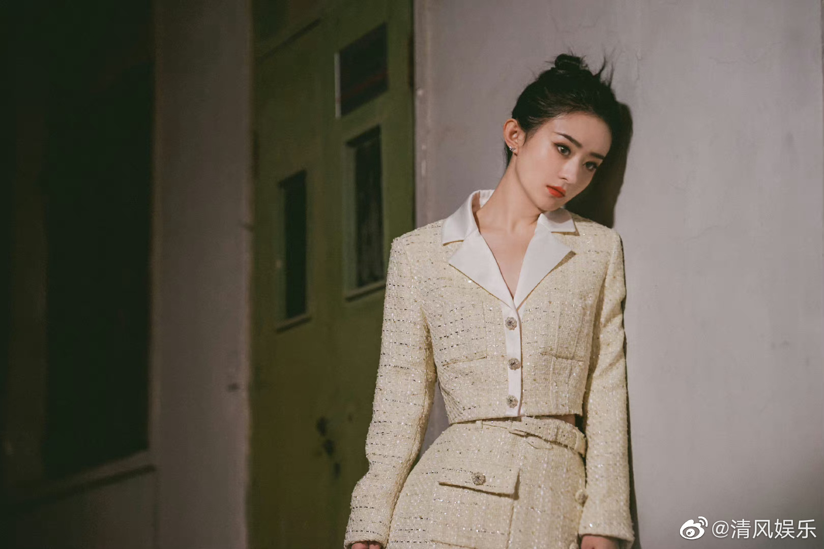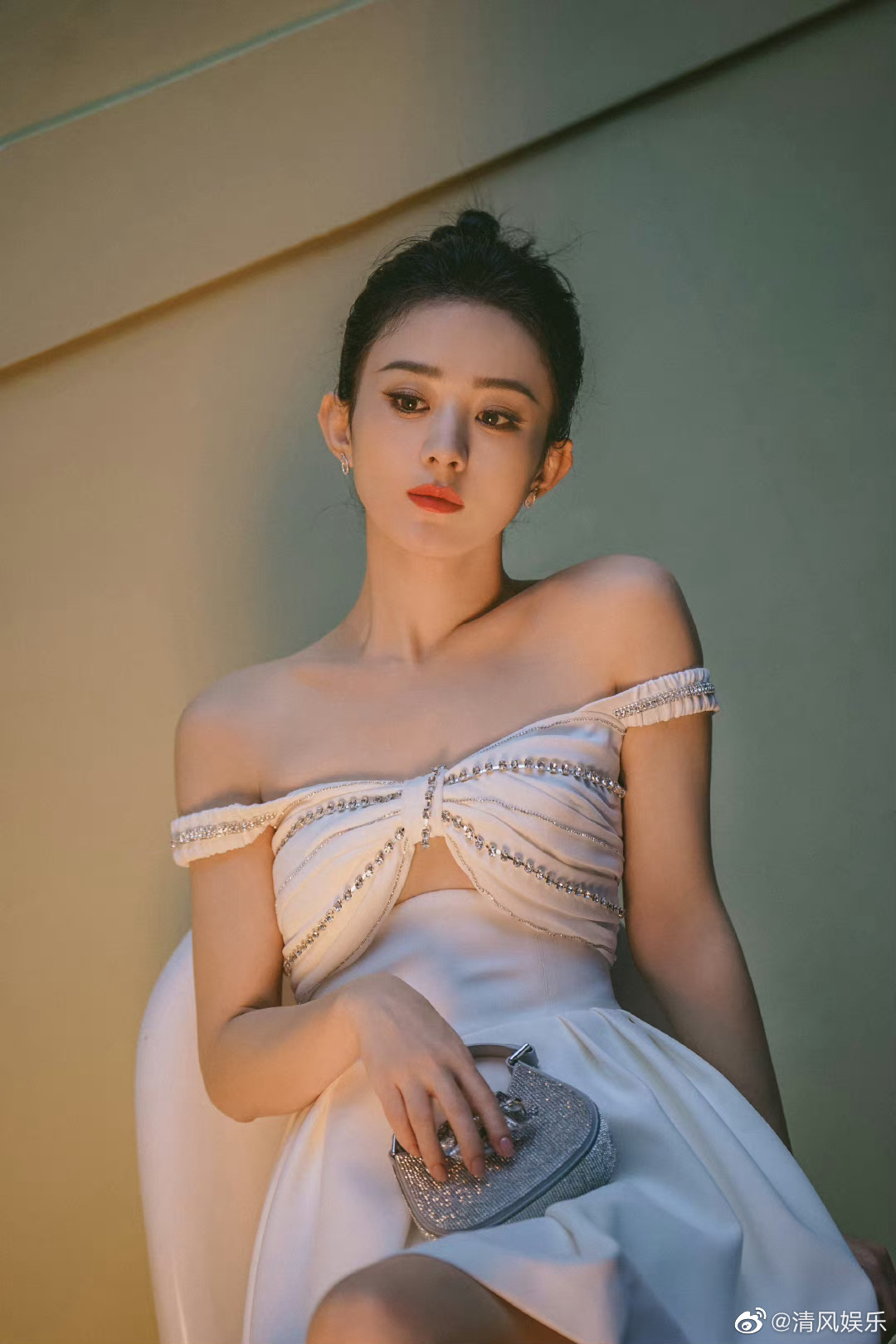 赵丽颖电梯间出发图,抹胸亮片长裙+短发造型好温柔,颖宝太美了吧 #赵丽颖电梯间出发图#