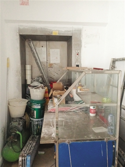 近日,记者到滨海之星公寓走访,小区一楼电梯口堆满了杂物。记者了解到,该公寓楼是由圣龙大酒店于2007年5月改建而成,楼高7层,有130多户。