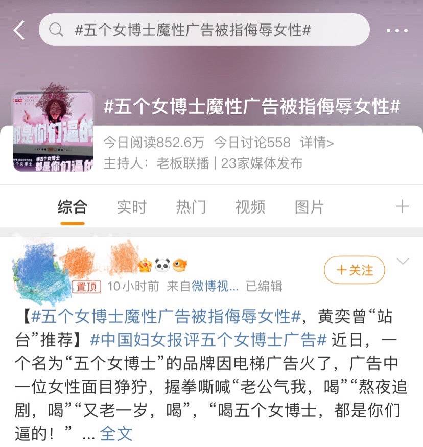 #五个女博士魔性广告被指侮辱女性#登上热搜