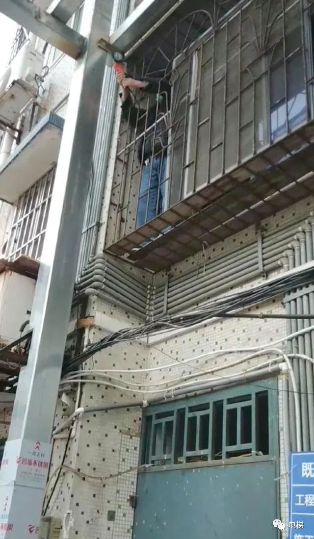 4月30上午8时许,黄某切割电梯二楼安全防护装置视频截图。此前有过类似行为