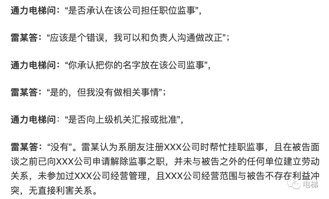 2021年3月2日,有人向通力电梯举报雷某在一家咨询管理公司担任监事。2021年3月4日通力电梯找到雷某面谈: