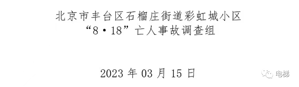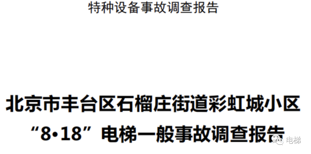 北京市丰台区石榴庄街道彩虹城小区8.18电梯一般事故调查报告