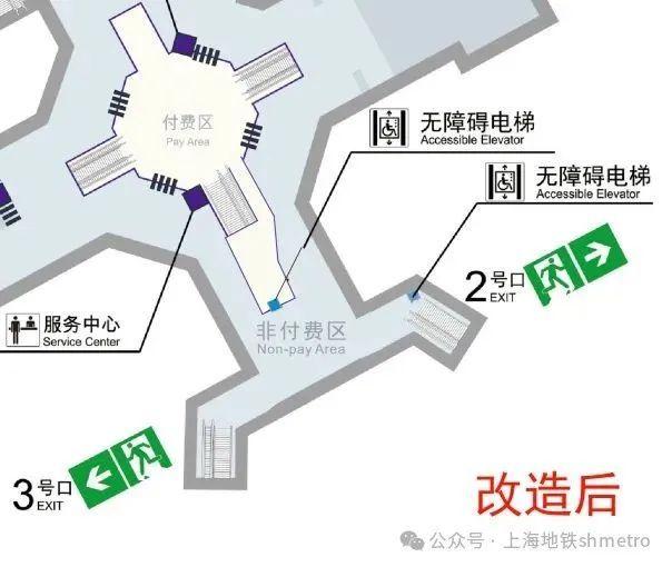 为改善西藏南路站车站换乘方式、提升车站无障碍通行能力,车站自去年导向改造后再次优化车站结构,将站厅付费区扩大至站厅无障碍电梯处,方便乘客自助使用无障碍电梯。通过此次升级将减少乘客等待时间,提升车站服务效率,提高乘客满意度。