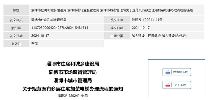 为加快推进淄博市既有多层住宅加装电梯工作,进一步优化加装电梯办理流程,根据相关法律法规、山东省住房和城乡建设厅等4部门印发的《关于进一步做好既有住宅加装电梯工作的指导意见》(鲁建物字〔2024〕1号),结合淄博市实际,现将淄博市既有多层住宅加装电梯办理流程通知如下。