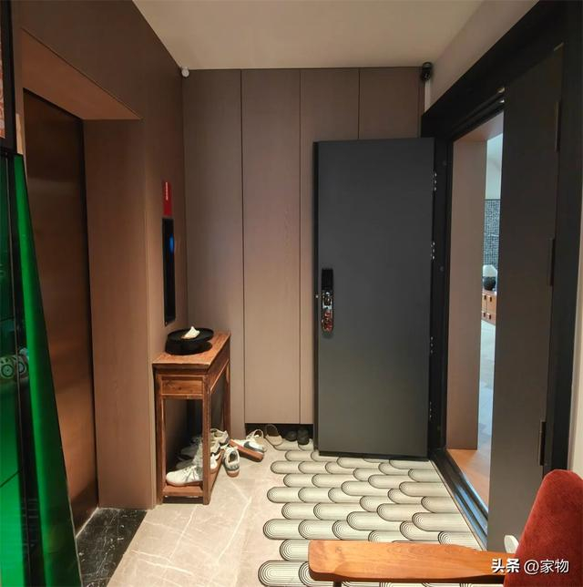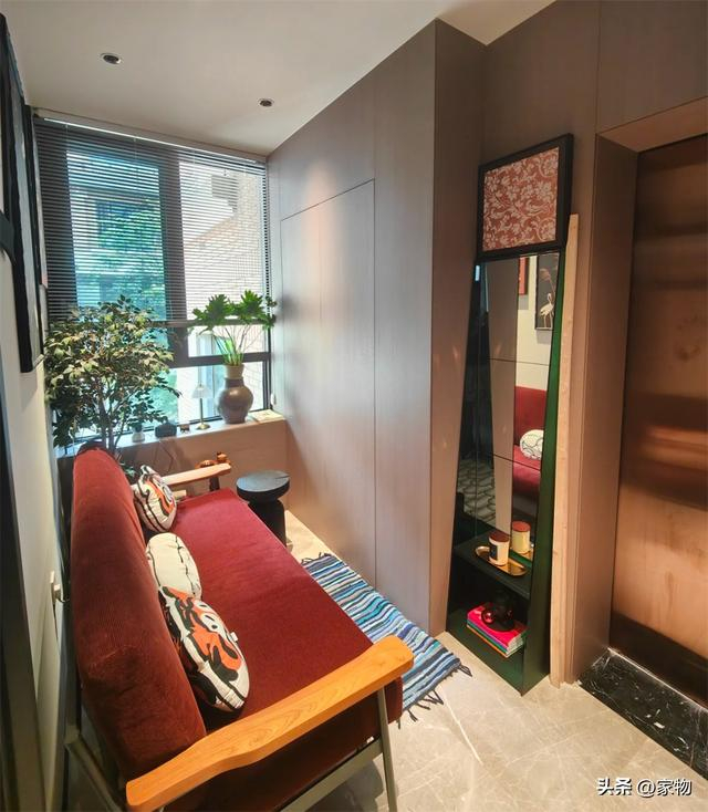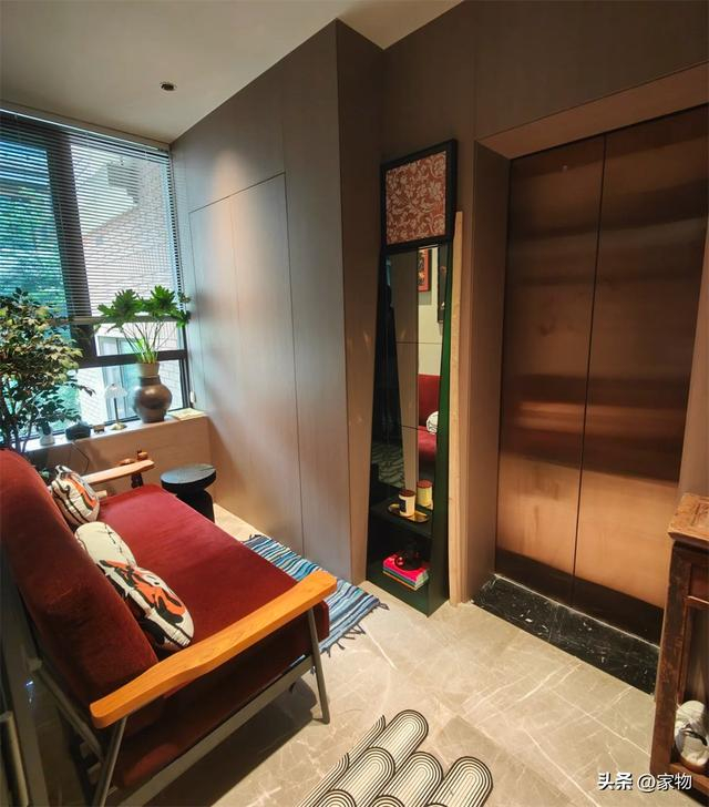 走进重庆一位业主(@302home)家里的一梯一户“玄关”,一刹那让人有些恍惚,这平平无奇的电梯间,居然被他巧妙改造成了一个私人客厅!