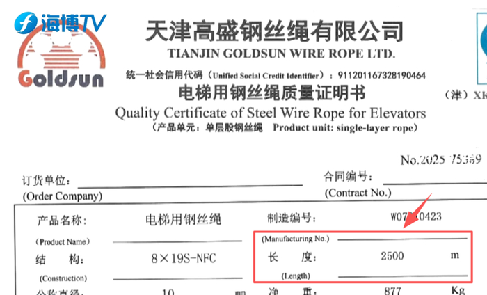 针对业主质疑,维保员解释,首批钢丝绳是天津高盛生产的合格产品,因工厂出货为两三千米的大捆,现场分装成小卷时,合格证未随货携带,但已提供电子档。至于为何重新发货,维保方称是“货发错了”,首批产品与报备的维修方案、预定的赛福天品牌不一致。