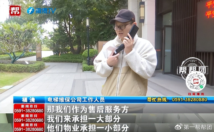 就在记者与业主讨论这笔费用该由谁来出时,物业方表示同意与电梯维保公司一同承担更换钢丝绳的费用。电梯维保公司也证实了这一说法。