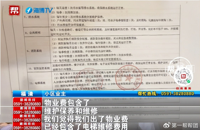 宏路市场监督管理所的工作人员表示,已责令小区物业整改维保记录签字问题。